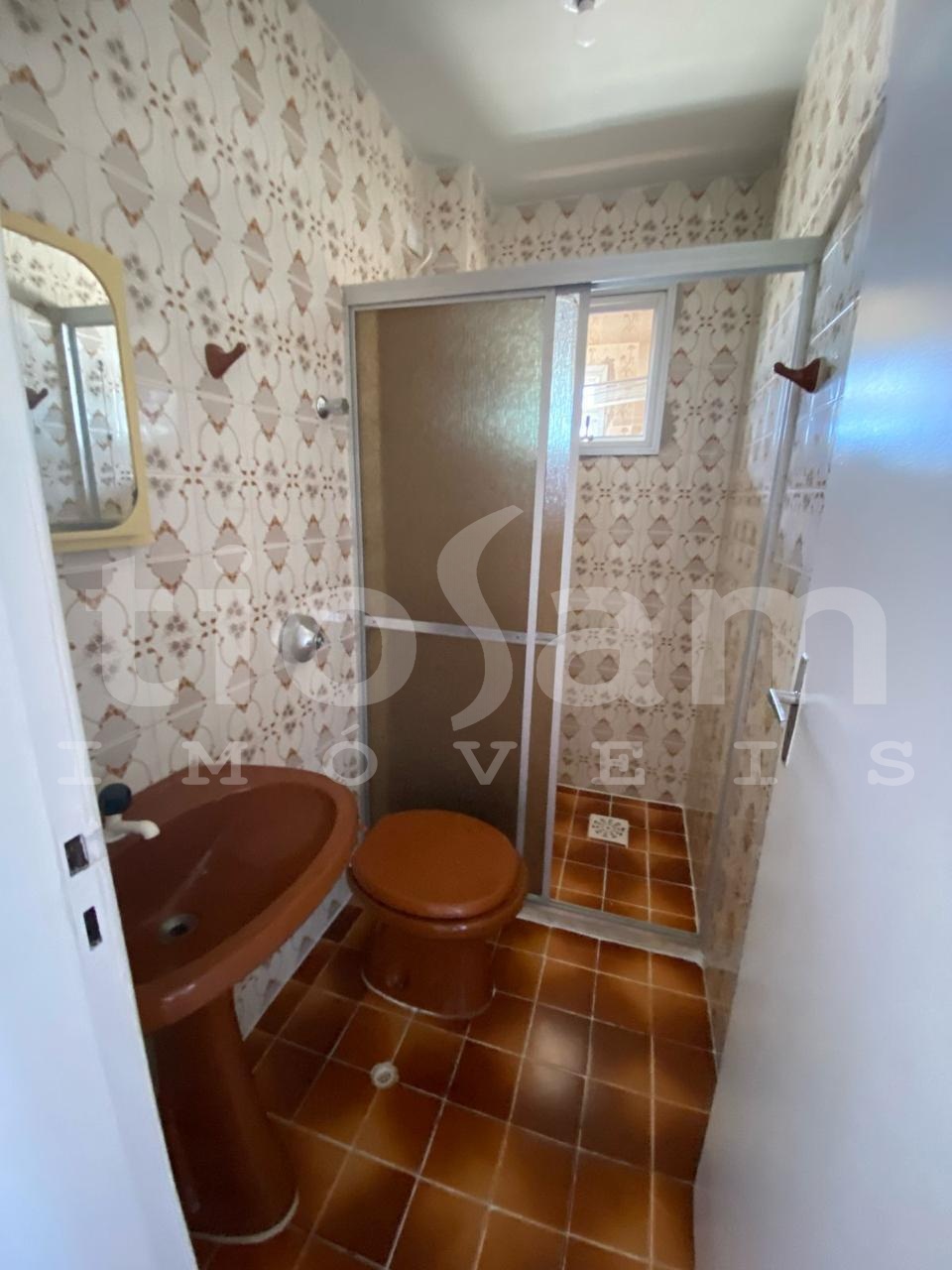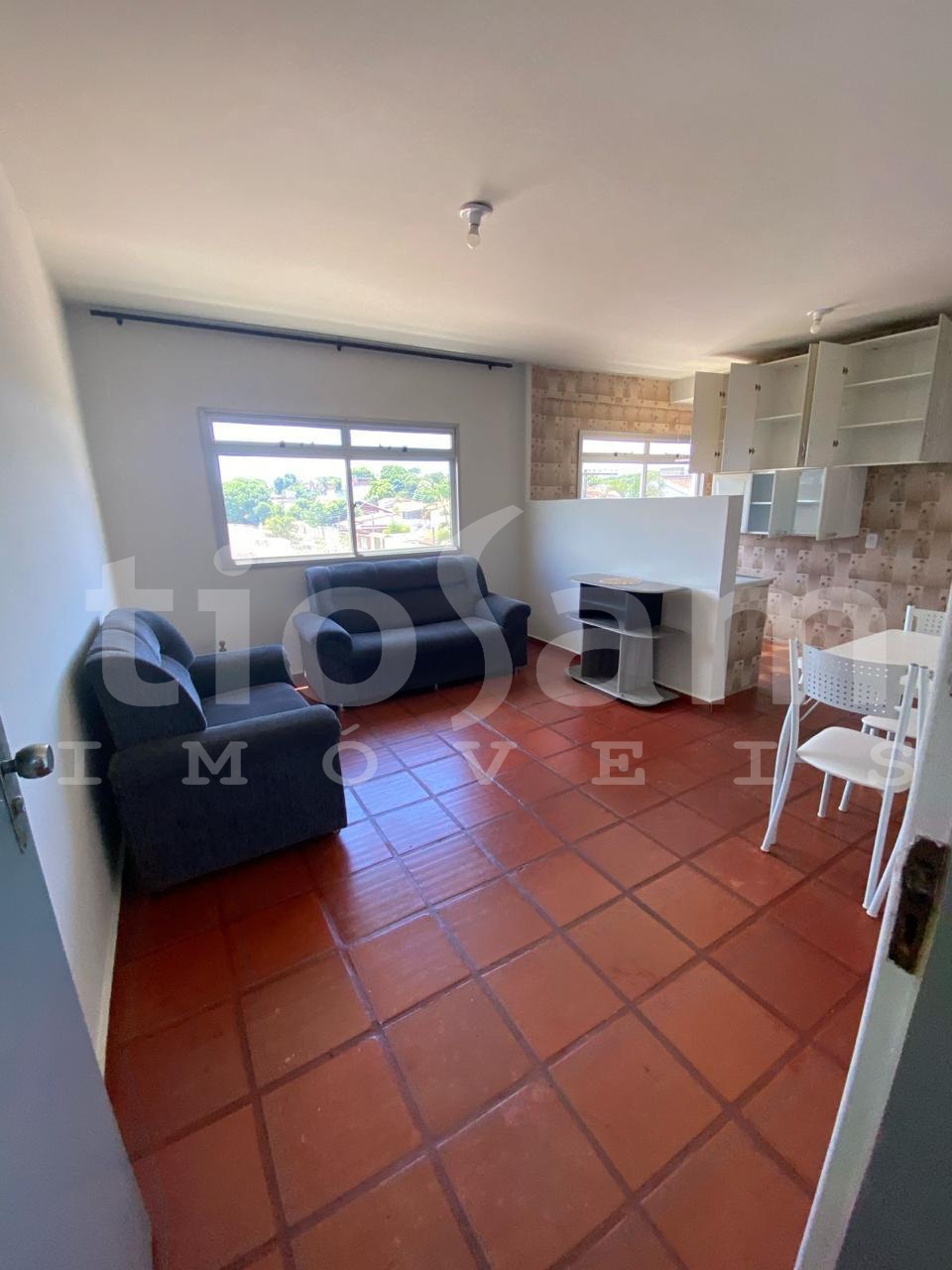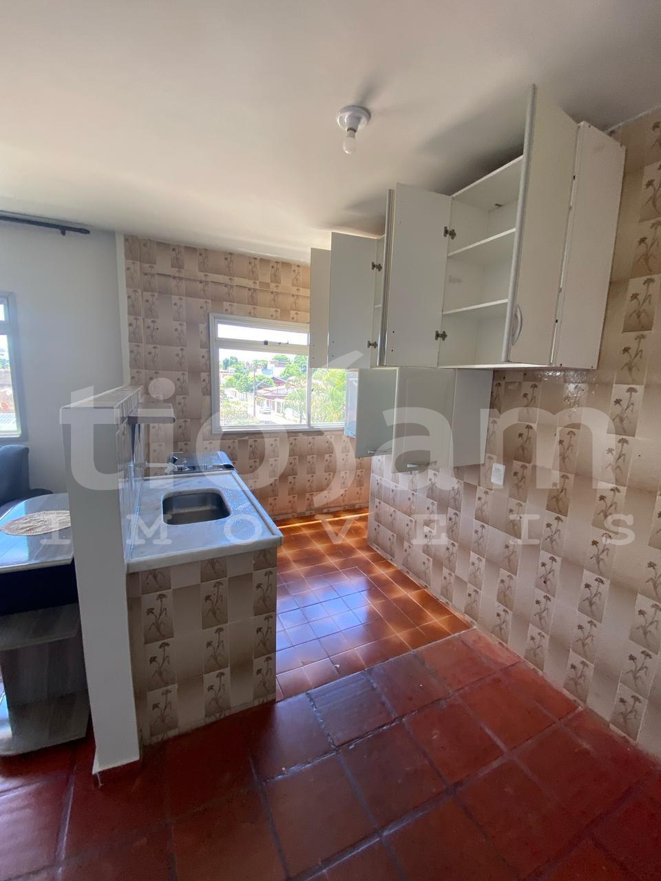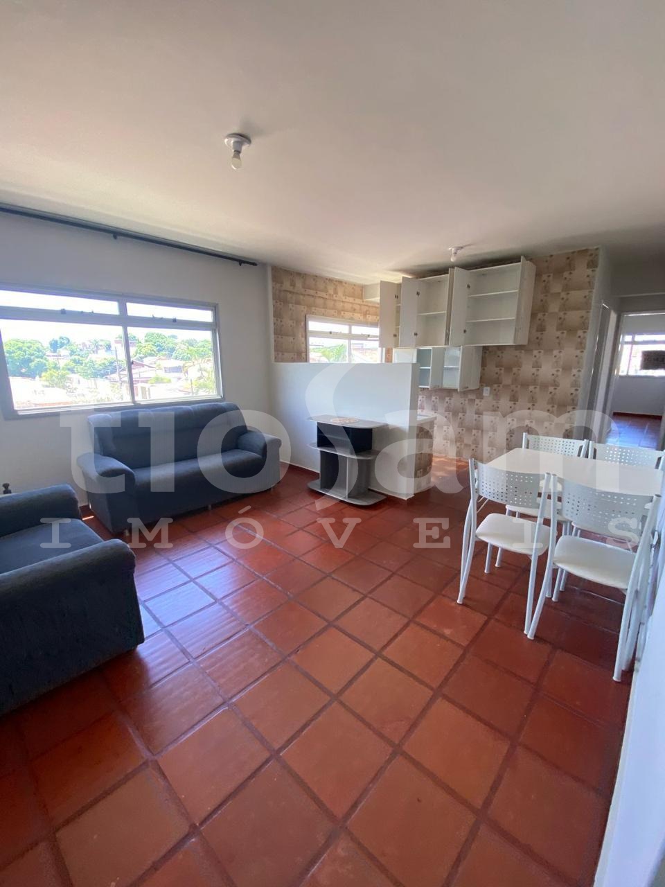 O apartamento tem 2 quartos, 1 banheiro social, sala de estar/jantar, cozinha e área de serviço. Vento nordeste, sol da manhã.
