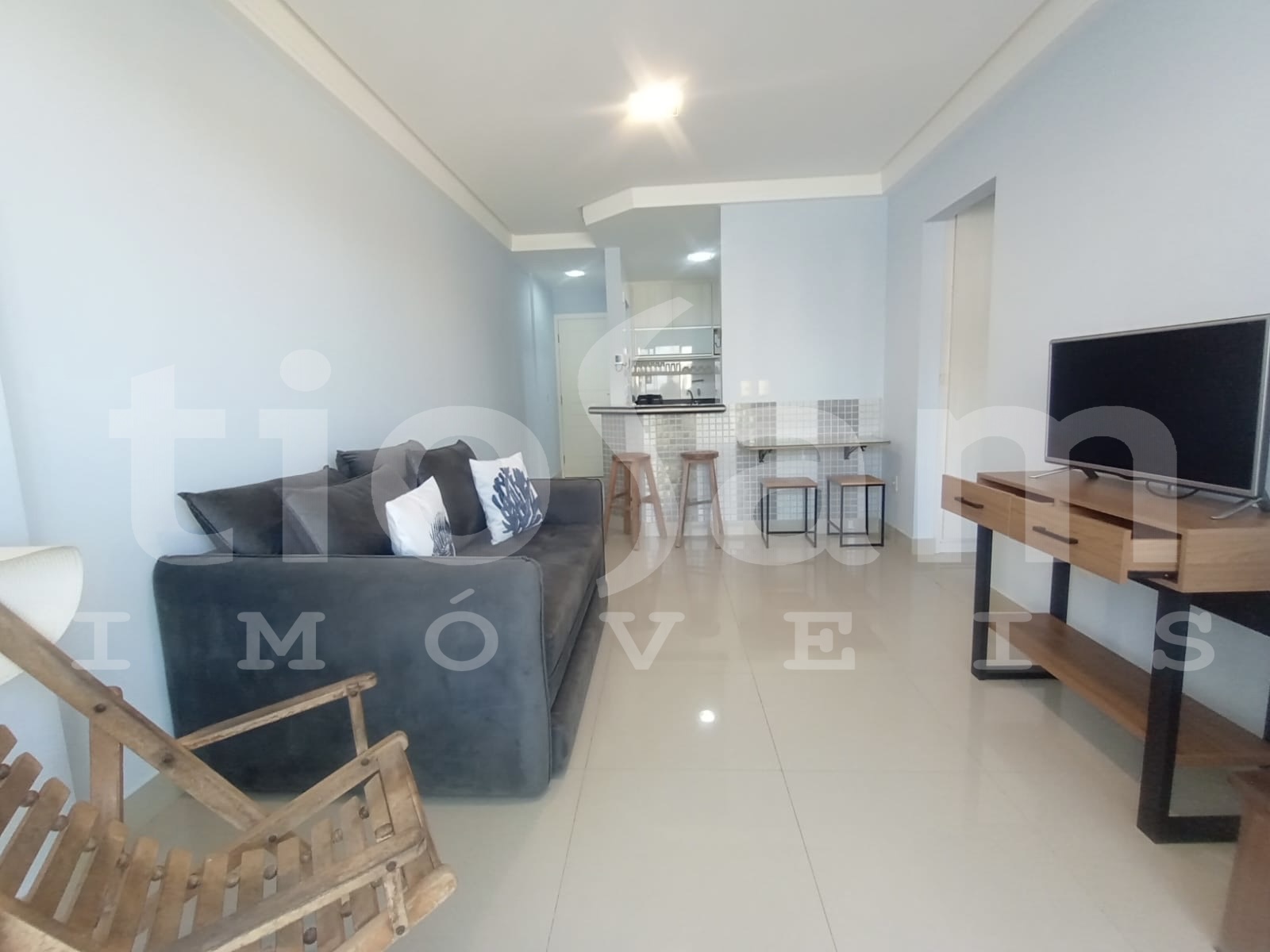O imóvel conta com 1 dormitório, banheiro social, sala de TV aconchegante e varanda com uma linda vista para o mar, perfeita para relaxar e apreciar momentos únicos. A cozinha estilo americana integra os ambientes com modernidade e funcionalidade, além de contar com área de serviço.