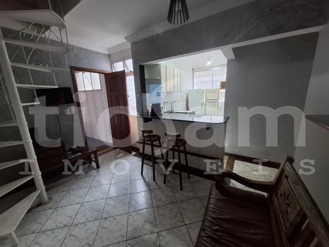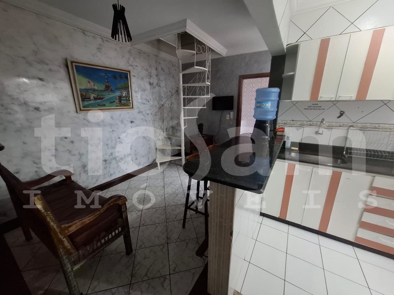 Edifício Paris. Apartamento 3 andar de escada, com área externa e vista mar, quadra da Praia, localizado na Av. Paris com Av. Oceânica. Detalhes do imóvel: 2 quartos, banheiro social, sala, área externa, cozinha, área serviço, 1 vaga de garagem rotativa descoberta. Documentação em ordem. Aceita financiamento bancário. Condomínio:R$250,00.
