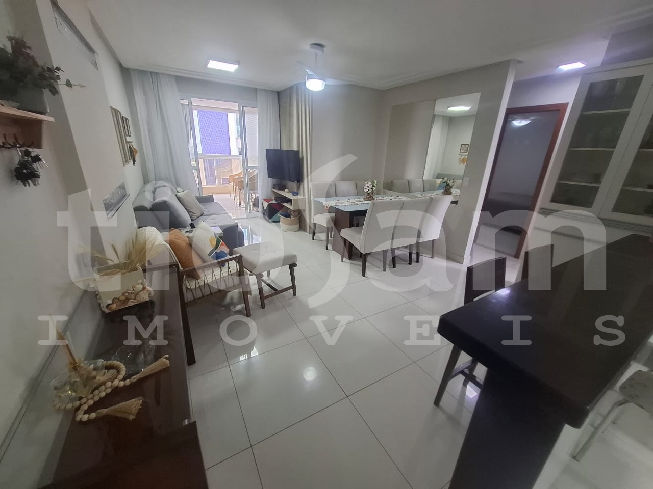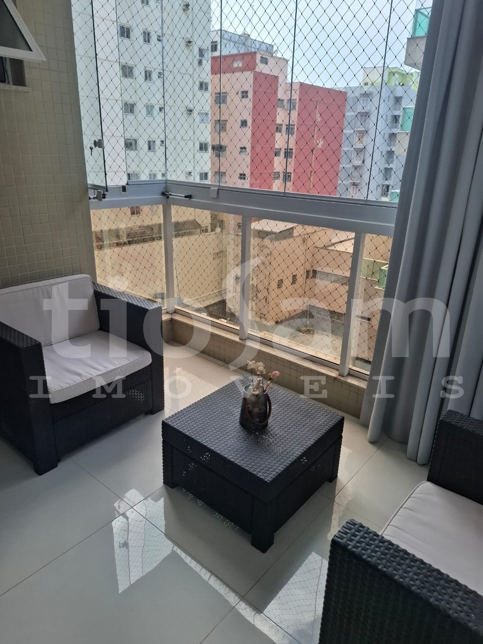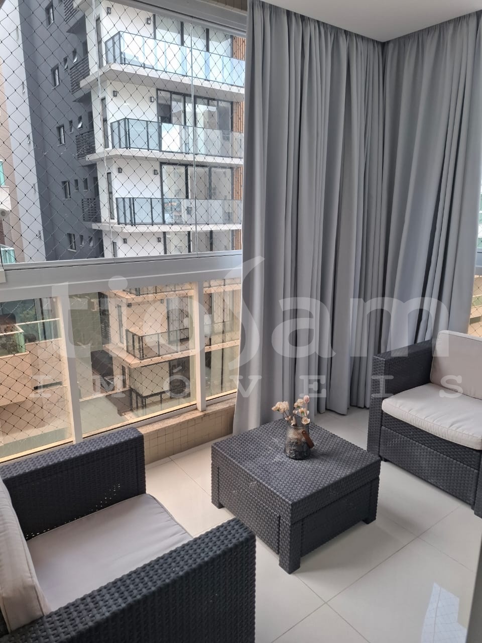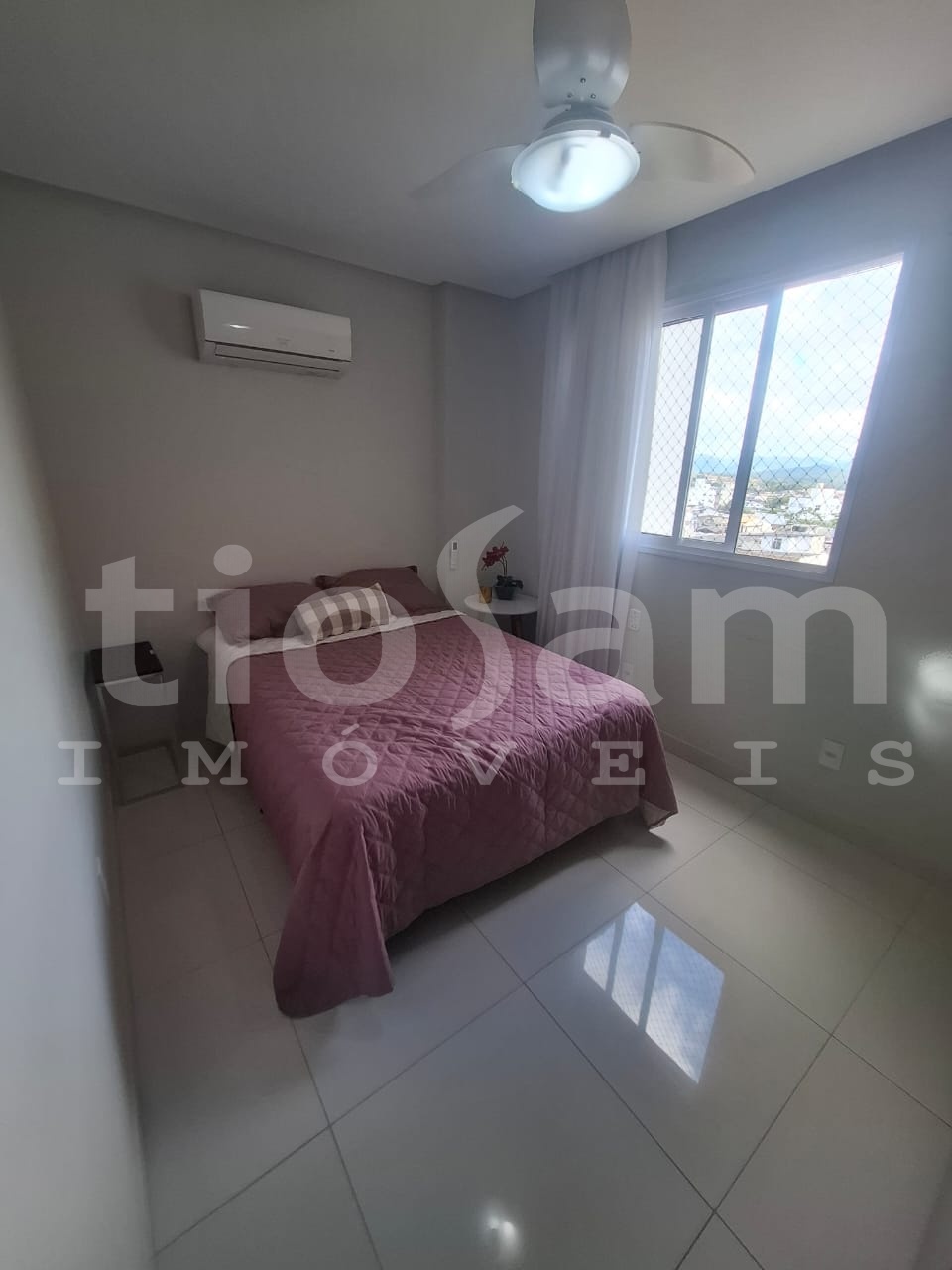 Este apartamento de 98m² está localizado no Edifício Romanza, no centro de Guarapari, Espírito Santo. O imóvel é mobiliado e decorado, com ar condicionado em todos os cômodos.