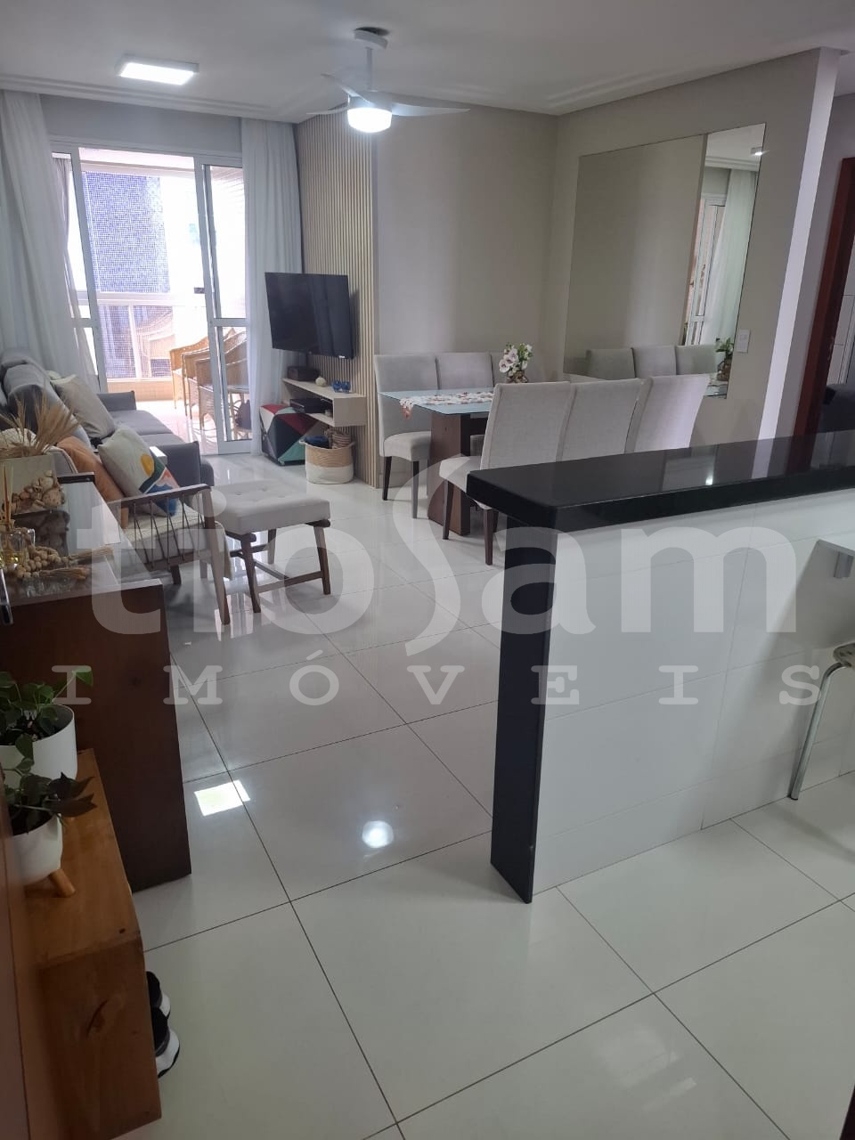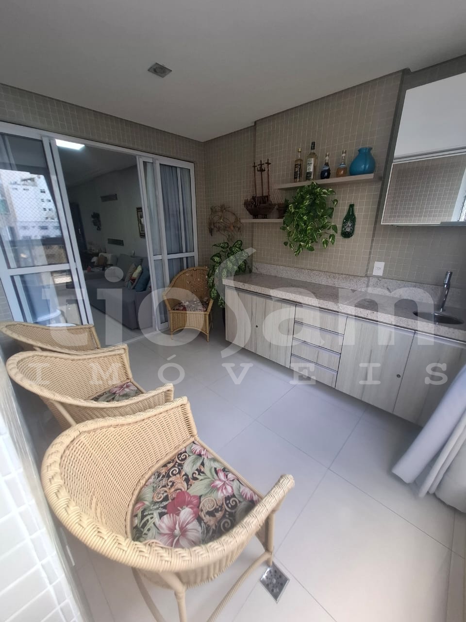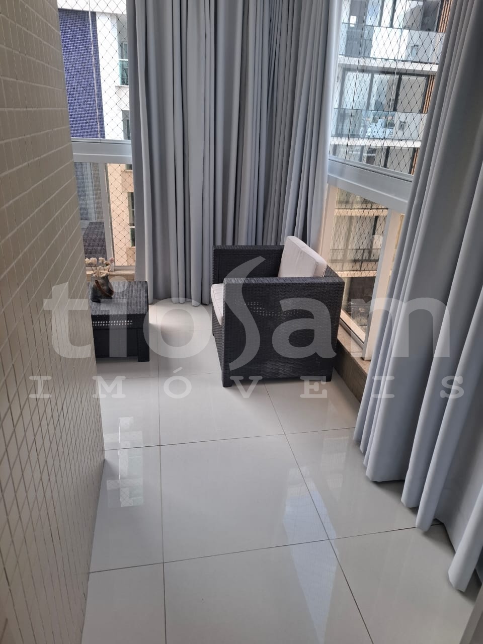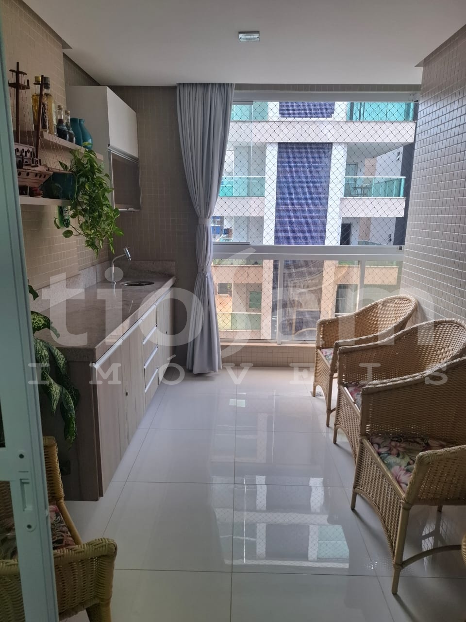 Este apartamento de 98m² está localizado no Edifício Romanza, no centro de Guarapari, Espírito Santo. O imóvel é mobiliado e decorado, com ar condicionado em todos os cômodos.