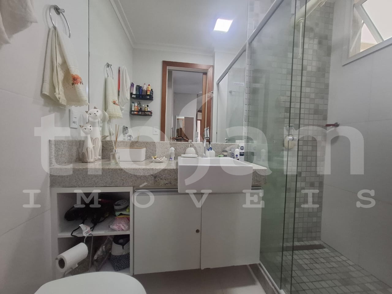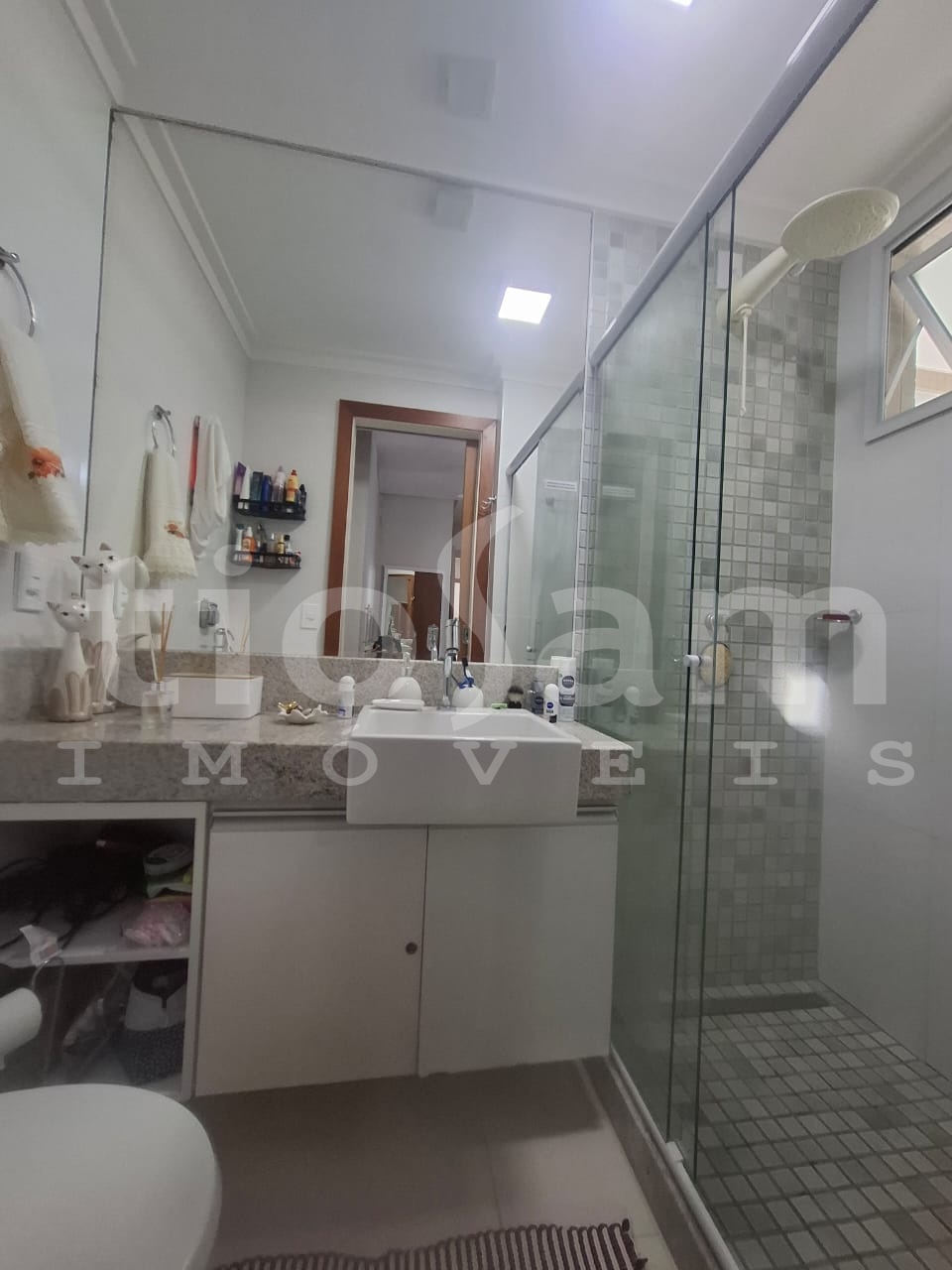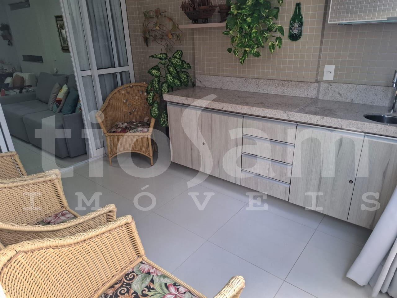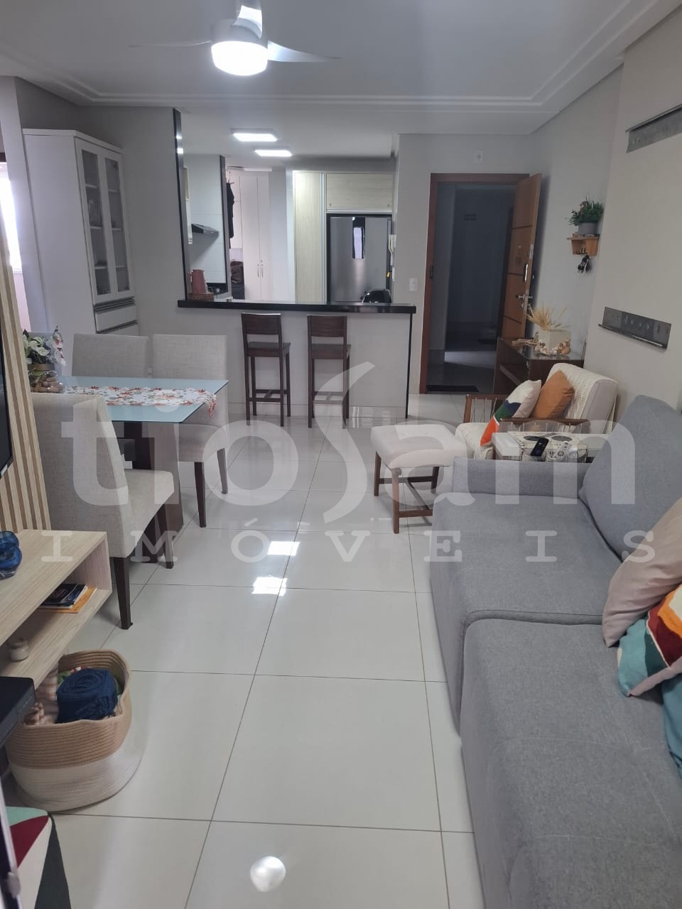 Este apartamento de 98m² está localizado no Edifício Romanza, no centro de Guarapari, Espírito Santo. O imóvel é mobiliado e decorado, com ar condicionado em todos os cômodos.
