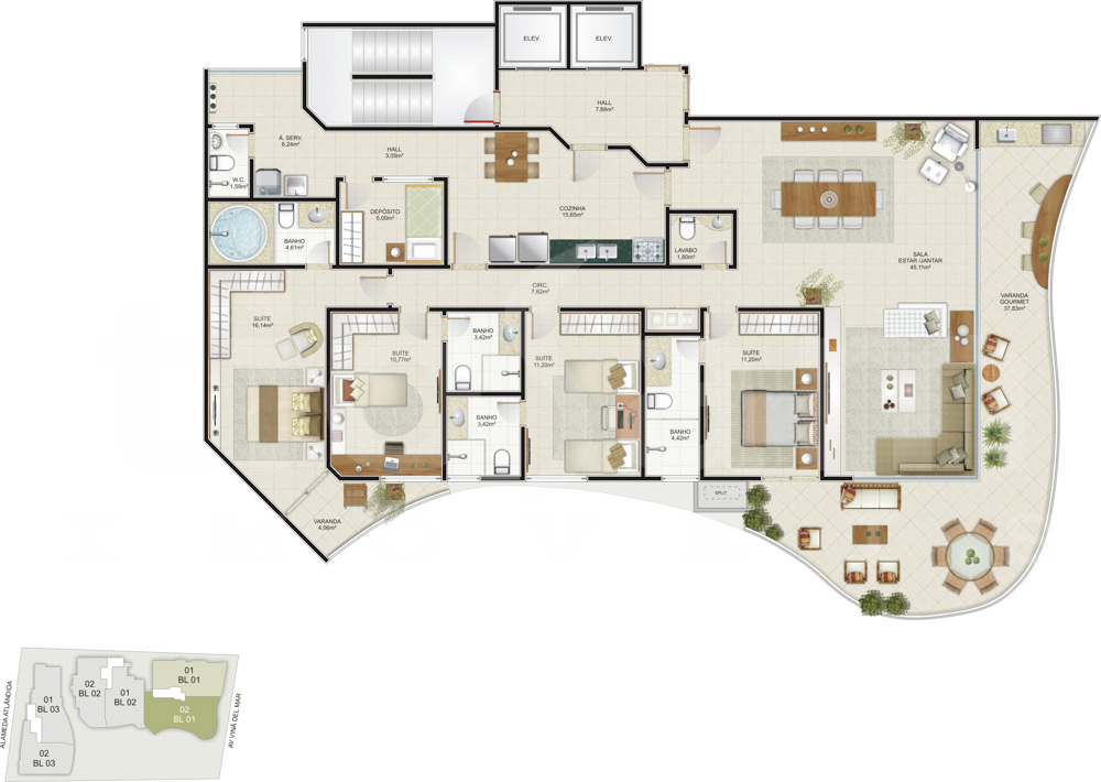 Localização estratégica, com fácil acesso às principais praias, restaurantes, serviços e pontos nobres da cidade, mantendo ao mesmo tempo privacidade e exclusividade.