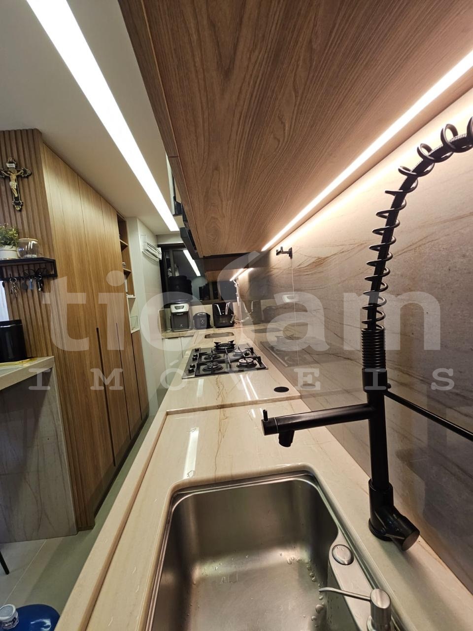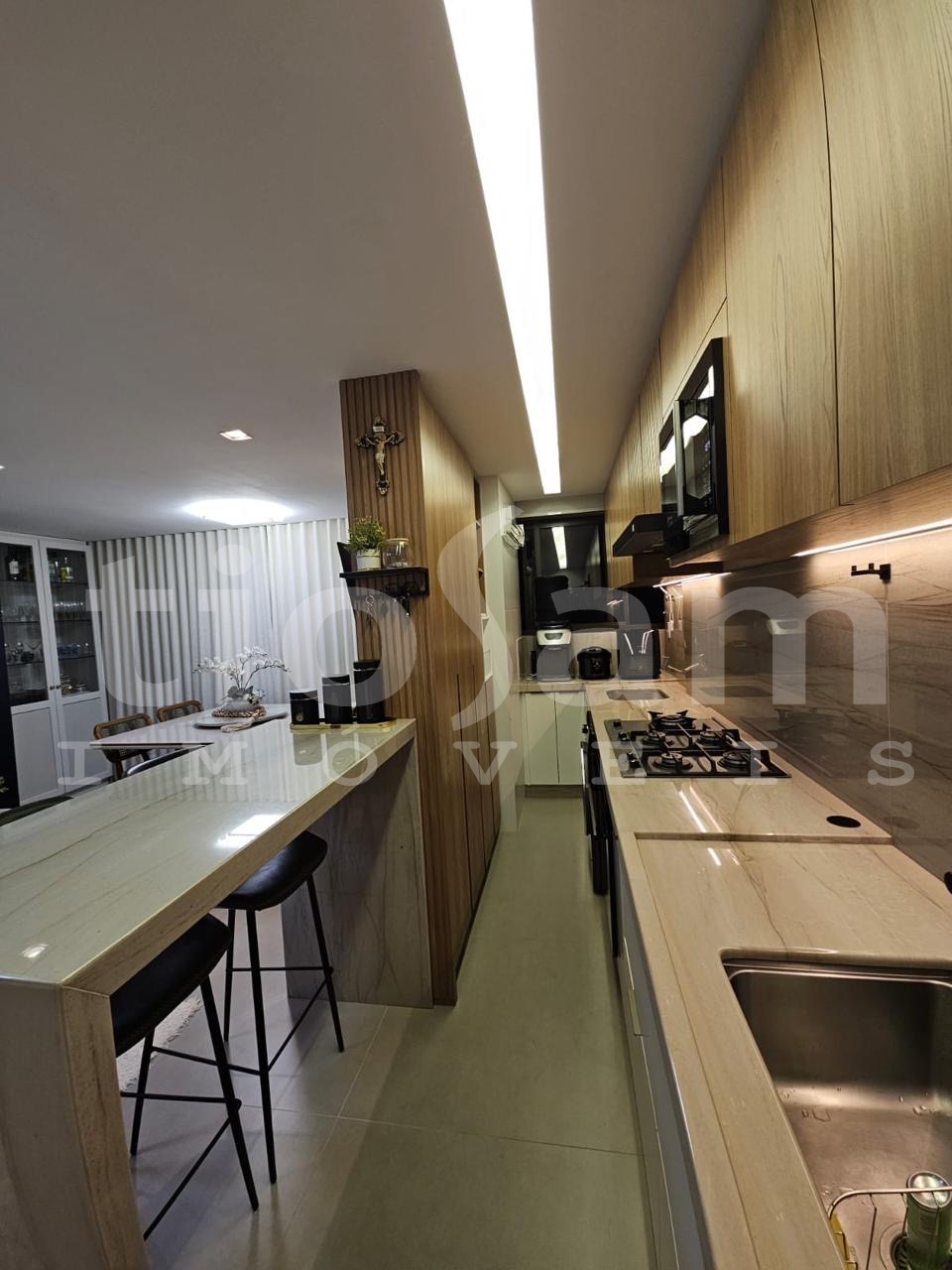 O apartamento está localizado na coluna 4, andar. O imóvel também conta com lazer completo na cobertura, incluindo piscina, sauna e espaço gourmet.