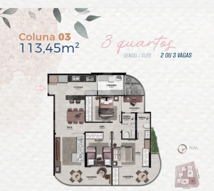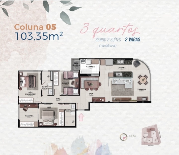 Área privativa: 103,35 m²