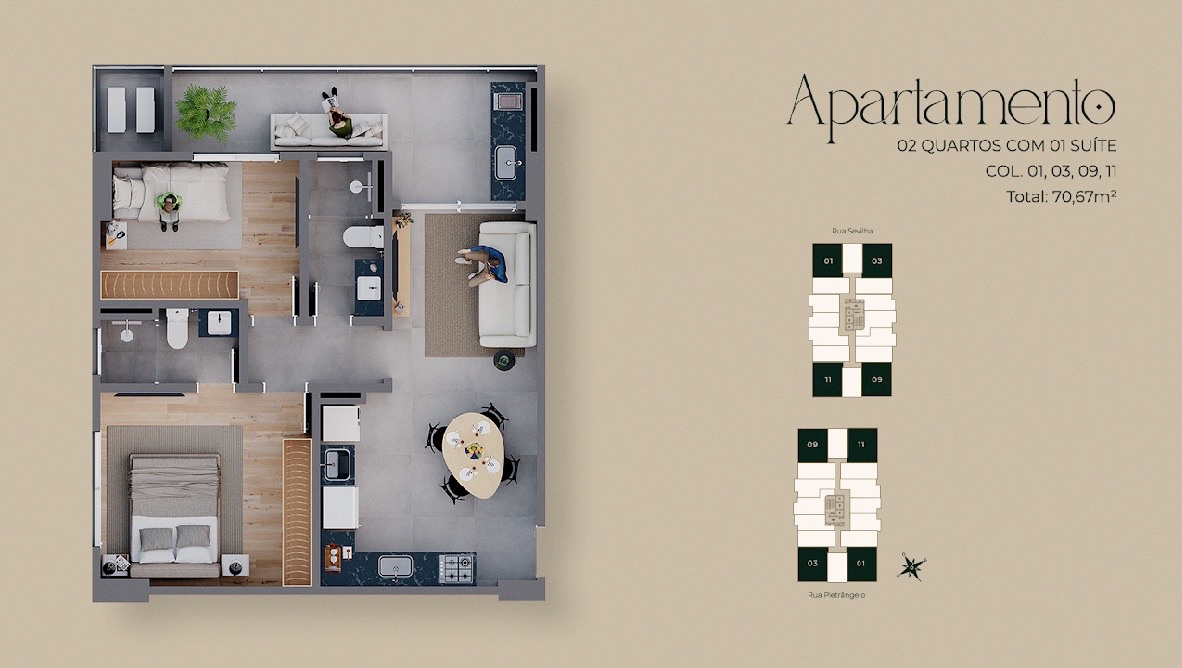 70,67 m² | 2 quartos | 1 vaga de garagem