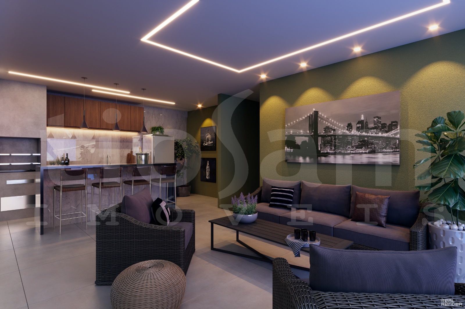 • Sala integrada à cozinha